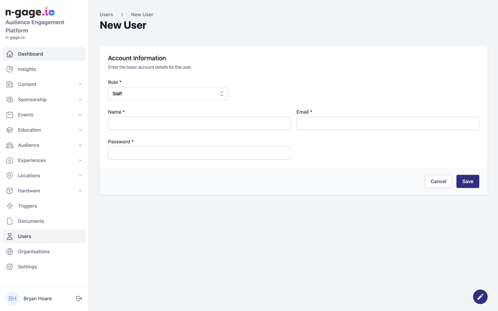 - When creating a new user, administrators must enter the required details to include role, email address and name.