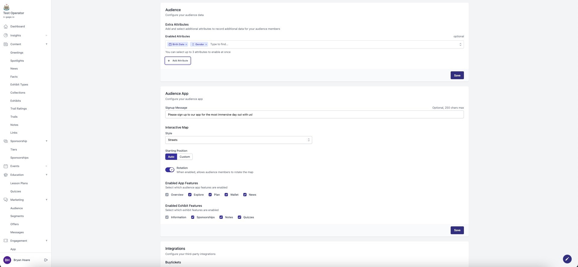 - The software permits up to three attributes to be enabled at any one time as part of the sign-up process. An unlimited number of attributes can be created and added to the system to give operators the ability to vary the data they wish to collect.
