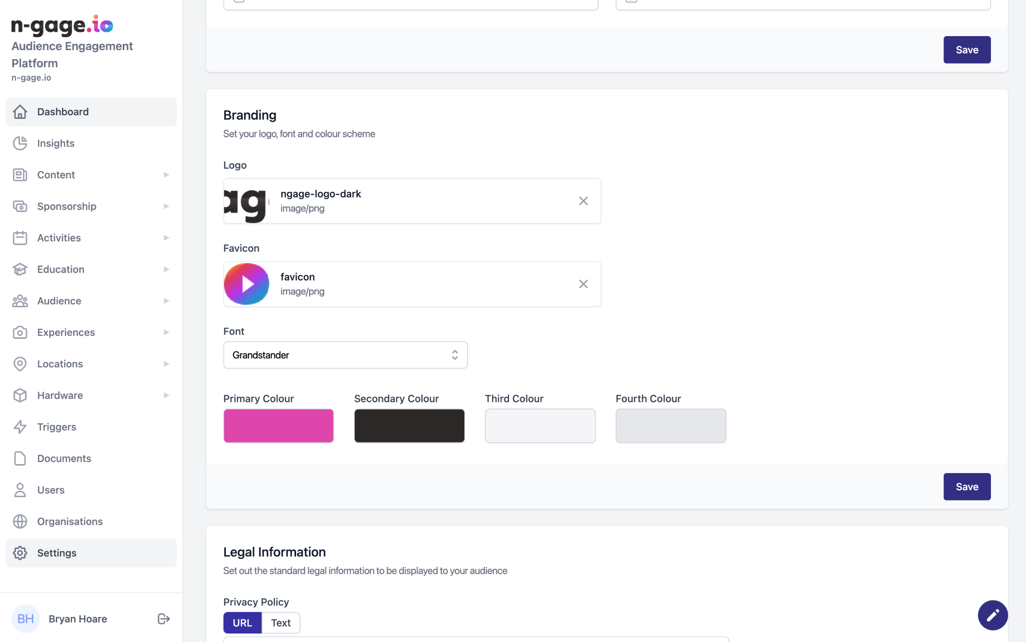 Upload your logo and favicon, and choose colours and fonts to align the operator platform with your brand. App branding is handled by the n-gage.io support team during onboarding.
