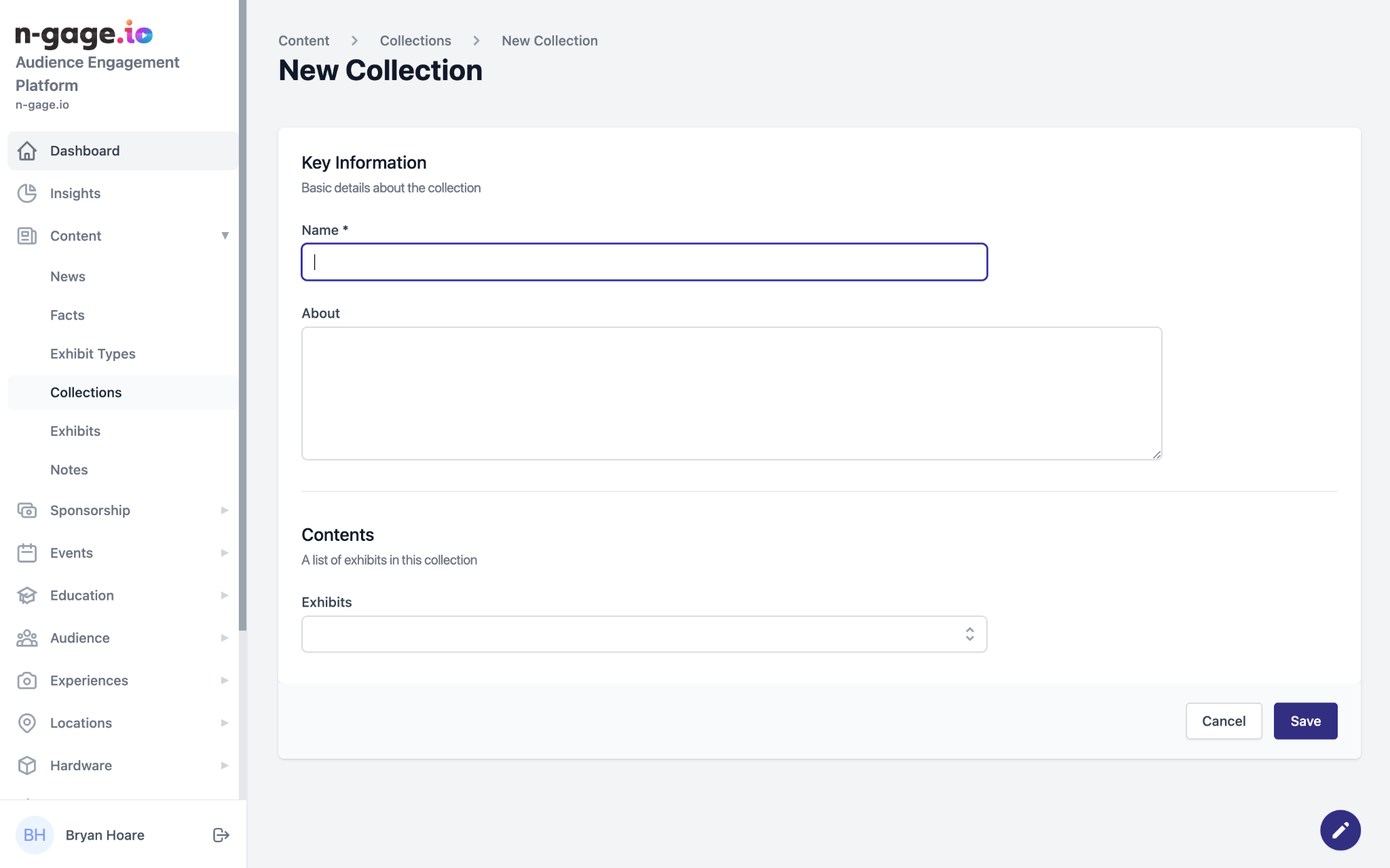 - An additional layer of content management includes the collections feature, which allows users to group their exhibits of various types together.