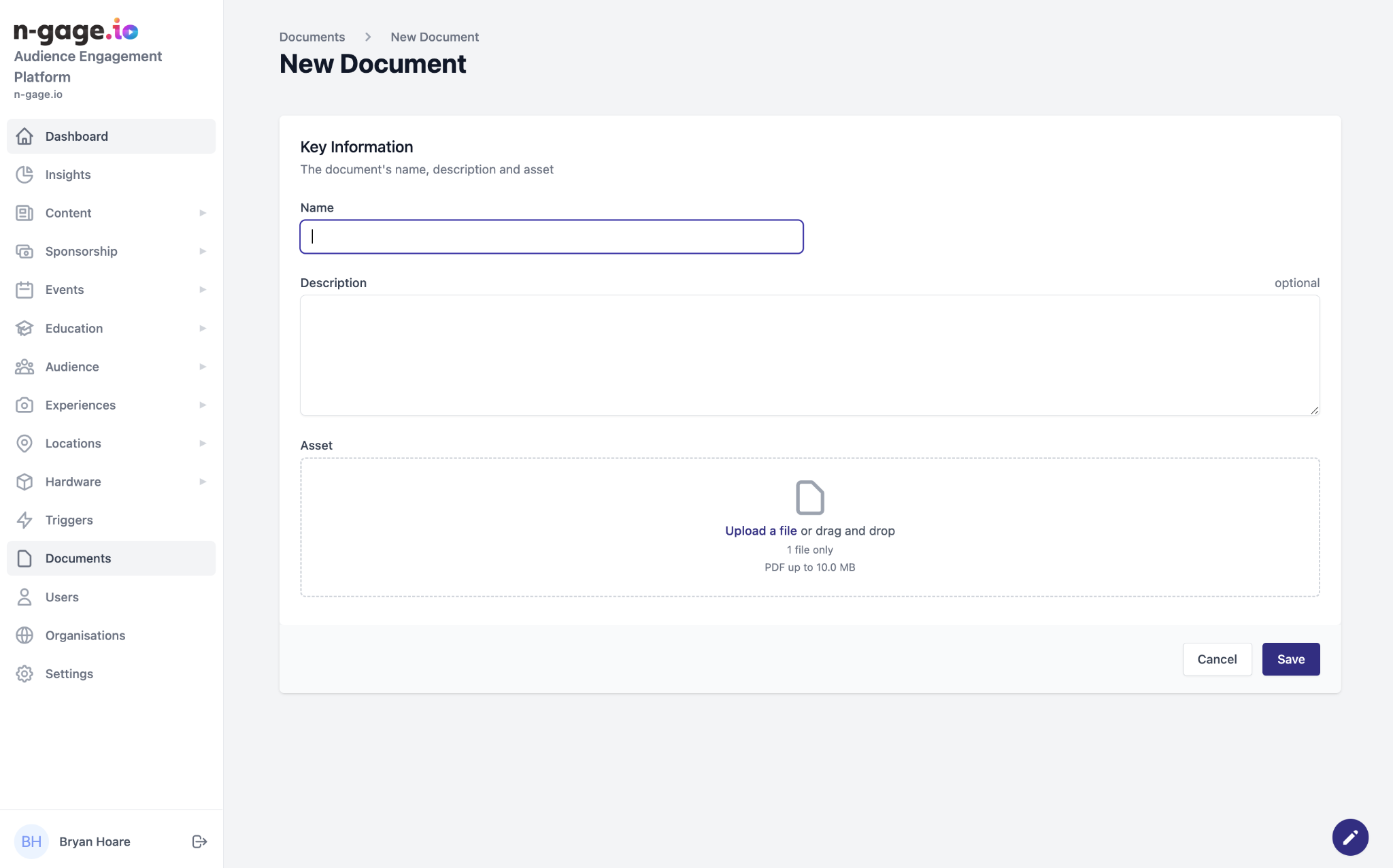 - The Documents section allows operators to store documents relevant to their operation and user of the n-gage.io platform and app.