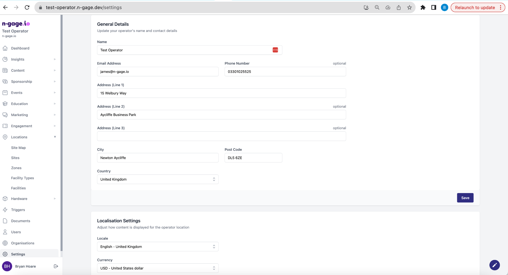 Enter your organisation’s address, contact info, and visitor details. These appear in-app and in emails. Also set localisation options like currency and units. Accurate setup here ensures your app users and staff see correct, trustworthy information.