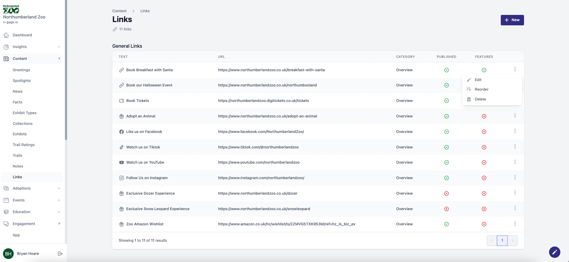 - Links can be added to the Overview page of the app and take the user to an external URL as inputted by the Operator. Links currently appear on the Overview page of the app and can be used to highlight content on any external website.