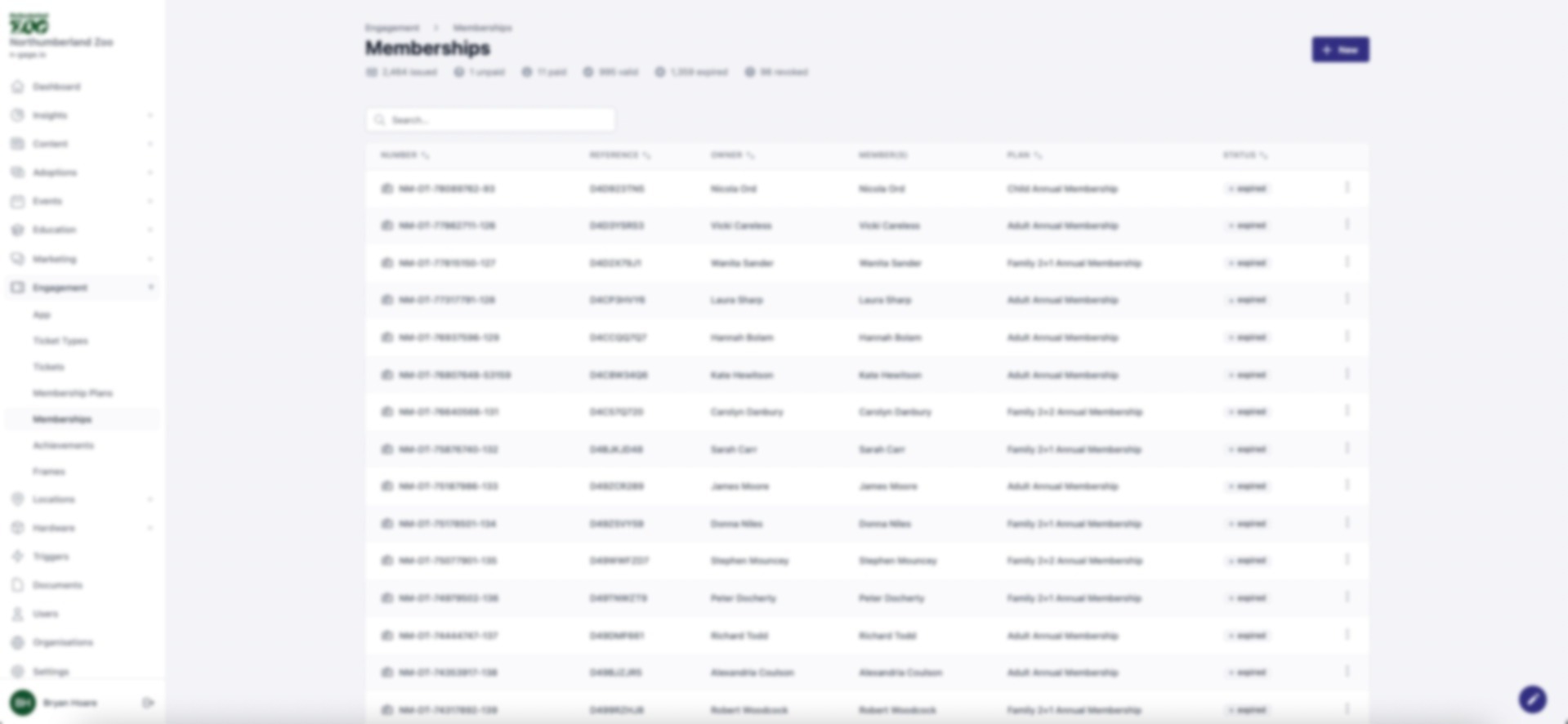 - The membership screen displays a list of all memberships. This list includes all imported membership data where a third party integration is in place as well as any manually generated memberships.