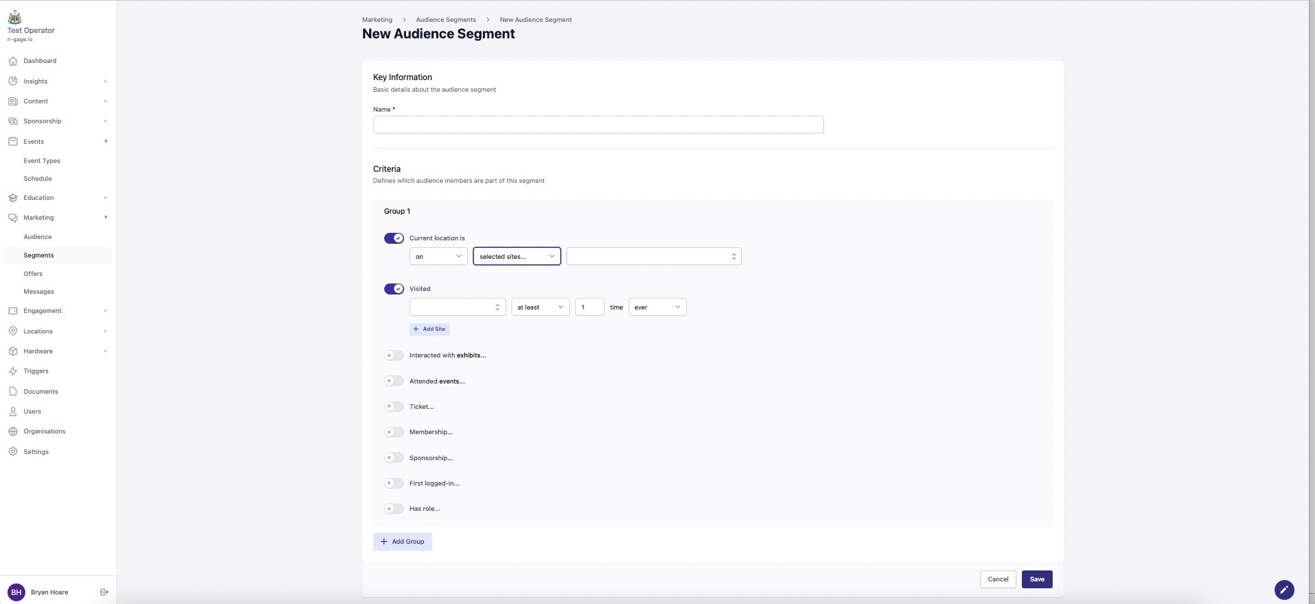 Create targeted groups using filters like location, visits, tickets, memberships, and behaviours. Segments are key for personalised messages and offers.